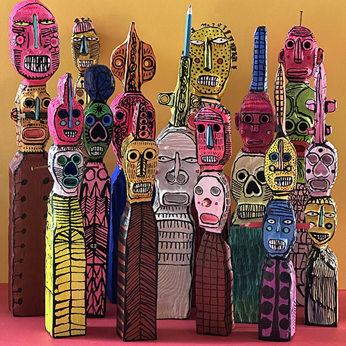On y trouvera une nouvelle salve de sculptures sur bois et quelques dessins régressifs au crayon de couleur.